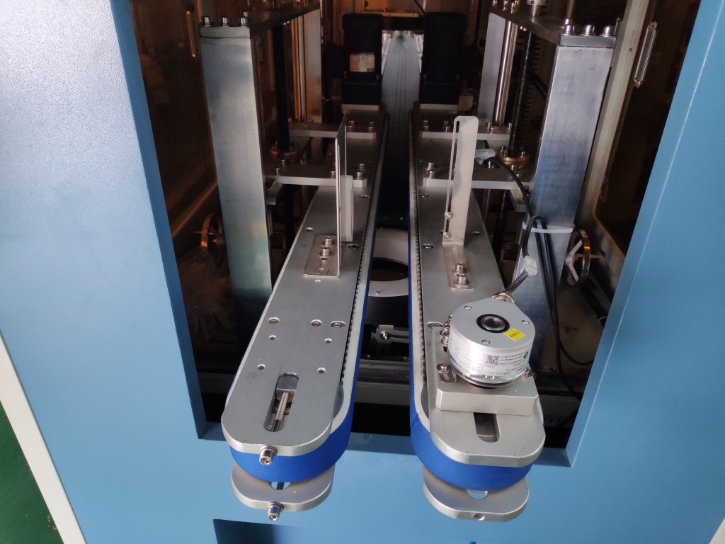 Description: The bottle is sent to the visual station through the clamping transition conveyor belt, the position is confirmed by the electric eye, the bottle bottom is identified by the camera, and the computer is calculated to distinguish the OK bottle and the NG bottle, and the NG bottle is dropped to the NG frame by the falling cylinder; OK bottle is transferred to the next station, the position is confirmed by the electric eye, the bottle mouth is identified by the camera, and the OK bottle and NG bottle are judged by the computer. The NG bottle is dropped to the NG frame by the falling cylinder; OK bottle is transferred to the next station, the position is confirmed by the electric eye, four cameras take pictures of the bottle body identification, the computer calculates and identifies OK bottle and NG bottle, and the NG bottle falls through the cylinder to the NG frame; OK bottle is transferred to the next station.